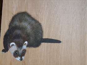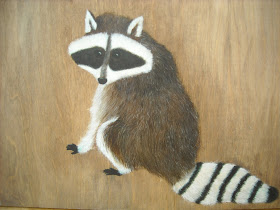 A very poor photograph of "Racoon" -- acryllic on pine panel.