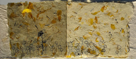 So I took this class in "Fibers" -- basically a part paper making class, part surface design class. (My sister is listening to the hamster dance song on her cell phone as I write this, FYI) Here are some experiments and final projects. Enjoy: