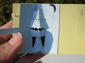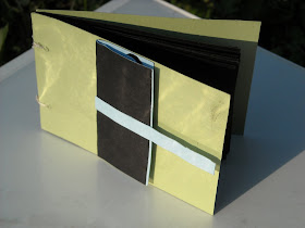 The first one is a miniature book -- my first attempt at doing a sewn binding AND a pop-up element. Kinda lame, but fun. I also got it dirty. Eep. Nothing inside yet (maybe not ever)